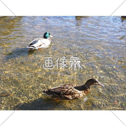 陽を浴びる鴨の群れ写真素材(1)