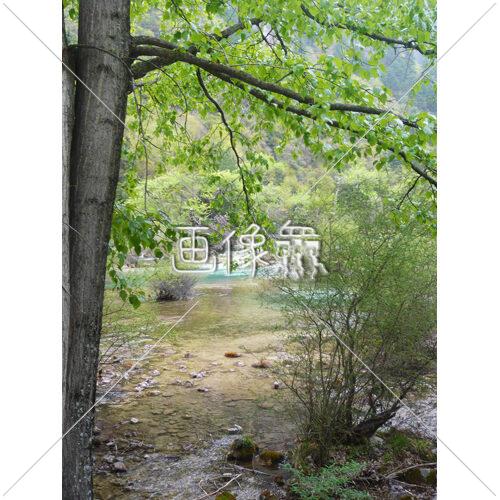 中国・チベット・九賽溝・世界遺産~草木と水のある風景写真素材(3)