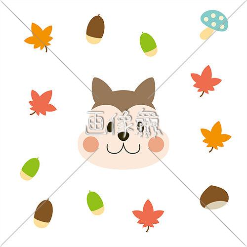 りす・どんぐり・もみじ・きのこのシームレス模様素材(3)
