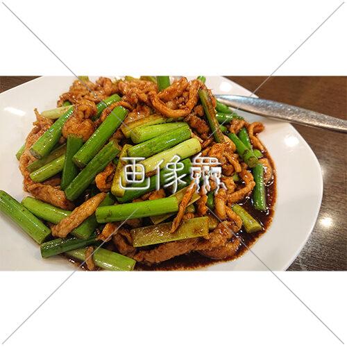 にんにくの芽と豚バラの炒めものの写真素材