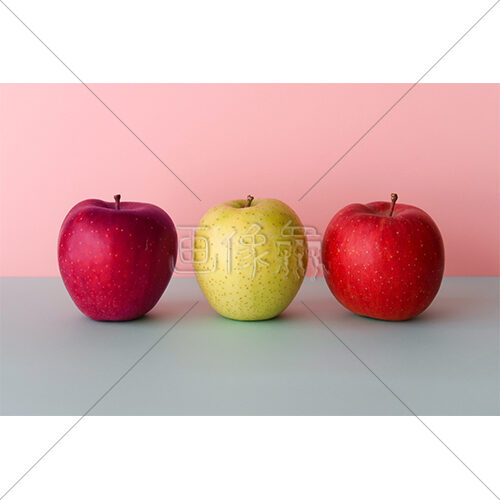 3つ並んだ3種のリンゴの写真素材(3)