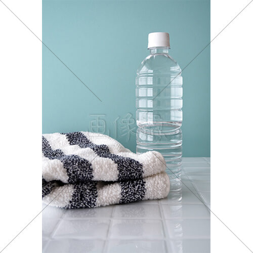 水が入ったペットボトルとタオルの写真素材(3)